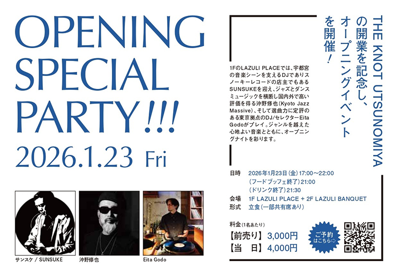 | THE KNOT UTSUNOMIYAの開業を記念し、オープニングイベントを開催します。 |